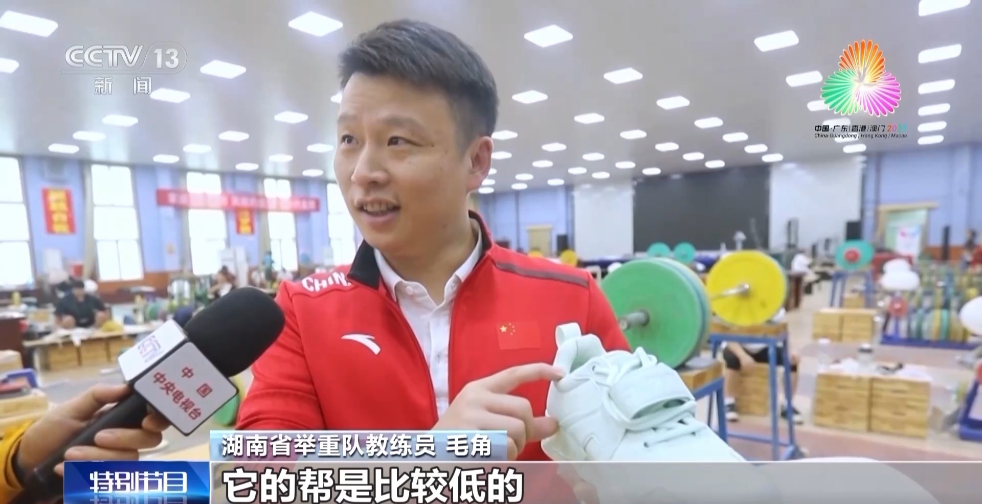 湖南省举重队教练毛娇:腰带保护运动员的腰部。它在运动员发力时增加腹内压,提高运动员的核心力量。