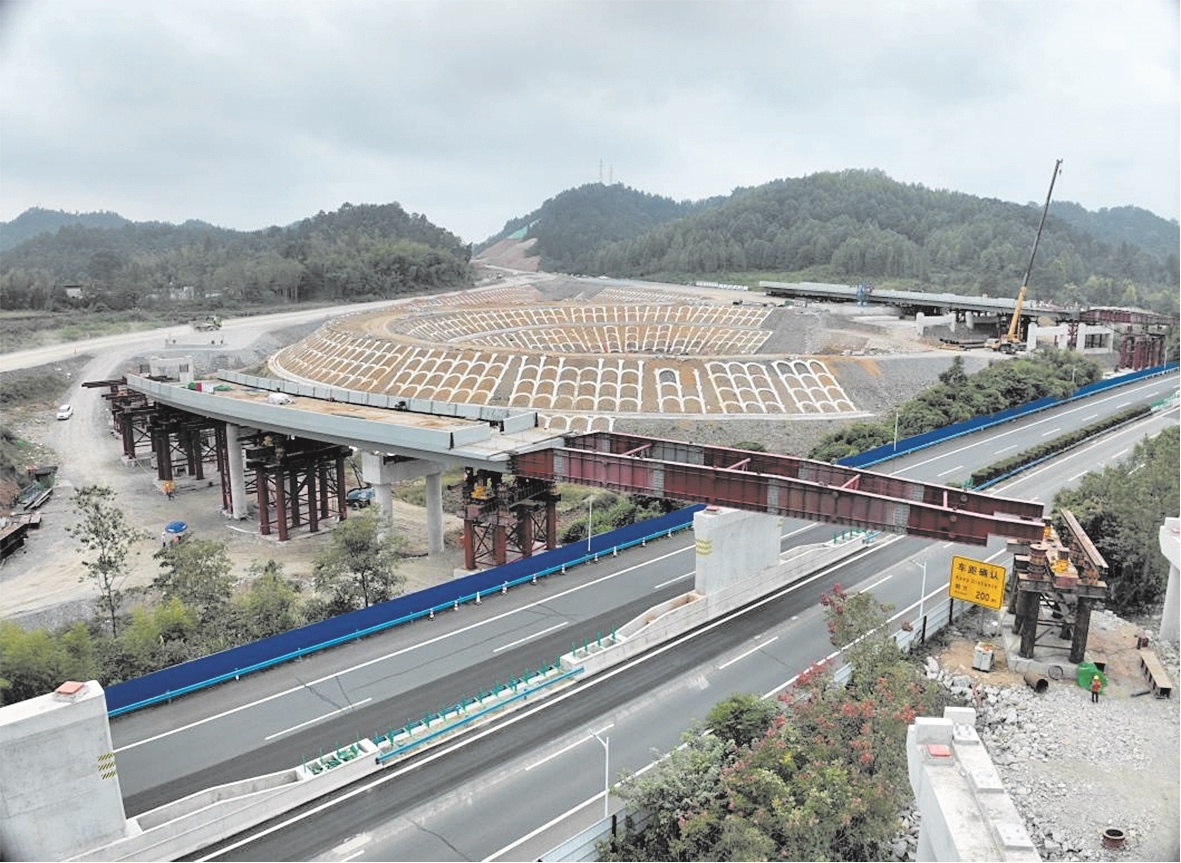 形成东立交的4座主桥和E、F匝道2号桥均覆盖G56杭瑞高速公路,总消耗钢梁箱2800吨。此次推的电子匝道桥高1.7米,宽11.5米。采用“四位”施工方法——拼装、焊接g、粉刷、推筑同时进行,将保证道路通行所需的时间缩短到最短的时间。技术项目组依靠反复的BIM动画模拟,提前克服了多台行走顶升机同步的难题,实现了“零误差”的控制级控制,为后续110米、980吨钢梁桥主线顶升提供了技术数据支撑。