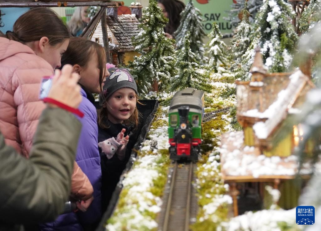 11月11日,孩子们在美国纽约植物园参观假日火车展。